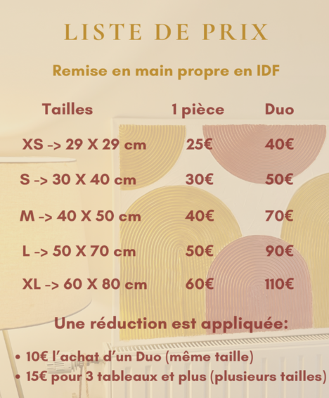 Un acompte de 50% sera demandé. Merci de remplir le formulaire en cliquant sur «COMMANDEZ» . Nous vous recontacterons dès réception de votre demande.